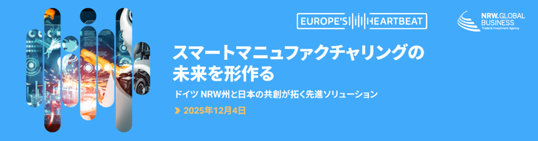 本セミナーでは、スマート製造・工場自動化分野におけるNRW州と日本の先進的・革新的ソリューションを紹介するとともに、双方の未来に向けた連携プラットフォームとなることを目指します。